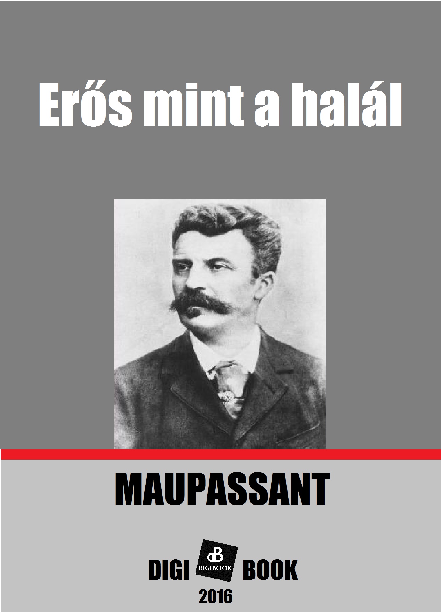 Maupassant Az erős mint a halál című regényét elhatalmasodó betegségével küzdve 1889-ben írta. Ez valójában utolsó befejezett regénye. Látszatra a nagyvilágban jártas író szalonélményei elevenednek meg itt, a sikeres író élményei. De tévedés azt hinni, hogy ebben a rengeteg önéletrajzi elemet tartalmazó regényben csakugyan a szalonéletről van szó. Az Erős mint a halál a szenvedély regénye, az öregkori férfiszenvedélyé, amelyet megcsal a természet játéka, és azt hiszi, hogy szeretője lányában a szerelme lép elébe fiatalon. Az egész történetet áthatja a szenvedélytől és az élettől búcsúzó, szorongató szomorúság. S ezzel a XIX. századi irodalom mindenkihez szóló remekművei közé tartozik. (Lengyel Balázs)