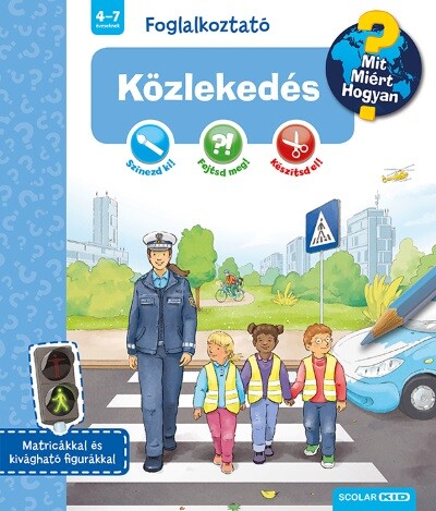 A Ravensburger Mit? Miért? Hogyan? Foglalkoztató sorozatának e kötetéből a gyerekek megtudhatják, hogyan kell gyalogosként, biciklivel, busszal és villamossal közlekedni. Mire kell figyelni a zebránál? Hol lehet biciklizni? Hogyan leszünk jól láthatók sötétben? Mire kell figyelni, ha szirénázást hallunk? A foglakoztató játékos feladatait megoldva a gyerekek többek között e kérdésekre is választ kapnak. A Ravensburger Mit? Miért? Hogyan? Foglalkoztató sorozata a kinyitható ablakokkal készült Mit? Miért? Hogyan? sorozat tematikáját követve a 4–7 éves gyerekek körében legnépszerűbb témákat dolgozza fel. A kifestőkből, különféle rajzos rejtvényekből, valamint „csináld magad” játékokból és kísérletekből összeállított foglalkoztatókat tömören összefoglalt tudományos ismeretek teszik még gazdagabbá. A színes kiadványok közepén sok kis öntapadós matrica és egy kivágható figurákkal teli kartonlap található. A sorozat kötetei:? Lovak Dinoszauruszok A kalózok A foci Hercegnők A vonatok A világűr A tűzoltók Járművek az építkezésen Közlekedés