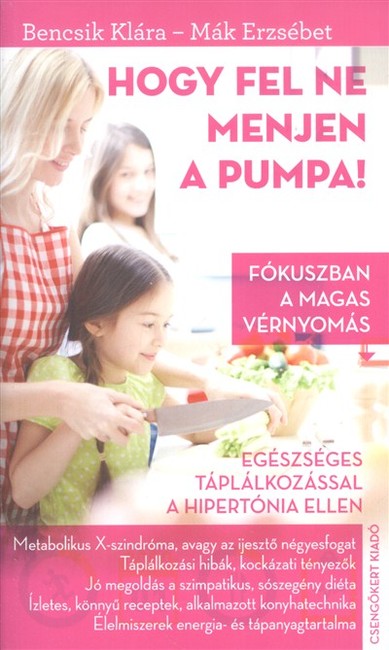 "A magas vérnyomás mint minden civilizációs ártalmakkal küszködő országban nálunk is népbetegségnek számít. Szerzőnk e kiadványban az általános tudnivalókon túl beszámol az okokról, és ismerteti azokat az összefüggéseket, amelyek a magas vérnyomás és a táplálkozási szokások között állnak fenn. A komoly receptgyűjtemény pontos számadatokkal kiegészítve bemutatja nyersanyagtól a húsételeken át egészen a süteményekig mindazt, amit egy betegnek vagy hozzátartozójának ismernie érdemes.""