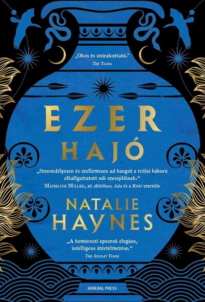 Az Akhilleusz dala rajongóinak Ez nem egy vagy két nő története. Ez mindannyiuk története. Az éjszaka közepén Aineiasz felesége, Kreúsza arra ébred, hogy szeretett városa, Trója lángokban áll. A tíz éve tartó háborúnak vége, a görögök győztek. Az asszony kétségbeesetten próbál menekülni a tűz elől, hogy elérje a városkaput, és reményei szerint találkozzon kedves férjével és kicsi fiával. Az utcákat azonban már ellepték a görög katonák. Vajon sikerül Kreúszának elkerülnie őket… és a végzetét? Mindenki hallott már a trójai háborúról. Azt azonban jóval kevesebben tudják, mi lett a sorsuk azoknak a lányoknak, nőknek és asszonyoknak, akikre általában az események mellékszereplőiként gondolunk. Mi várt rájuk a háború után? Miért küzdött meg az amazon hercegnő Akhilleusszal? Hogyan cselezte ki Pénelopeia a férje trónjára áhítozó kérőit? Az Ezer hajó az ő szemszögükből meséli el a nyugati világ egyik legnagyszerűbb és legmeghatóbb történetét. Natalie Haynes író és rádiós műsorvezető. Íróként több műfajban is kipróbálta már magát: krimi és ismeretterjesztő könyvek is fűződnek a nevéhez. Regényeiben, valamint saját rádióműsorában előszeretettel foglalkozik az antik szerzőkkel és műveikkel. 2015-ben a klasszikus irodalom szélesebb körben való megismertetéséért a Classical Association Prize díjjal jutalmazták. Az Ezer hajó a harmadik regénye, amely szerepelt a Women’s Prize for Fiction 2020-as rövid listáján.
