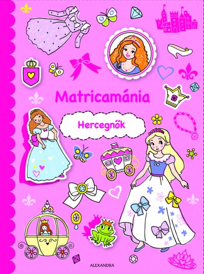 Keresd meg a hiányzó ruhákat, díszíts szívecskékkel a hintókat! Ebben a szórakoztató matricás színezőben bűbájos hercegnőket, elegáns ruhákat és csillogó ékszereket találsz. Ha felragasztottad az összes matricát, színezd ki a képeket!