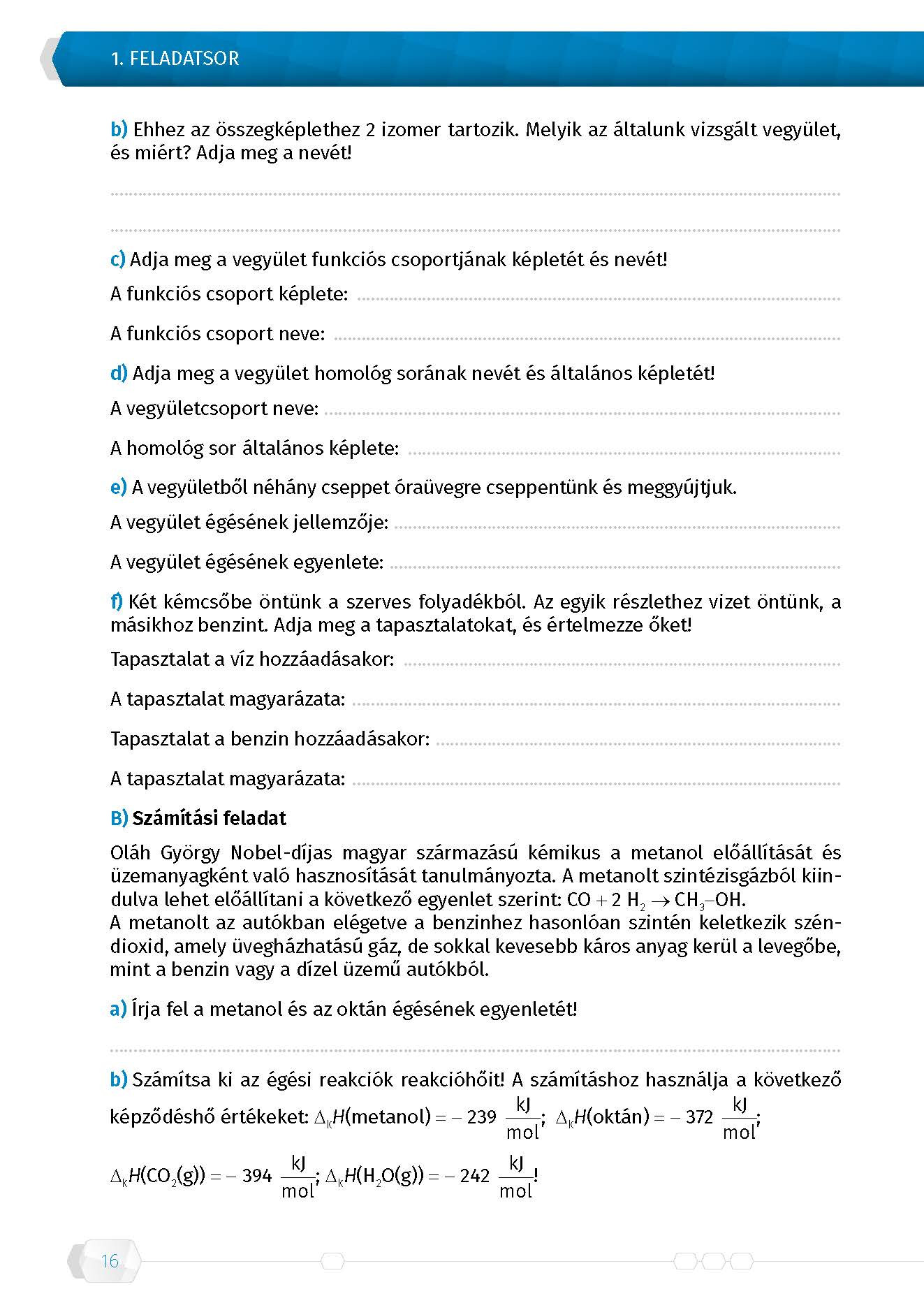 Érettségi mintafeladatsorok kémiából (10 írásbeli középszintű feladatsor) – 2017-től érvényes