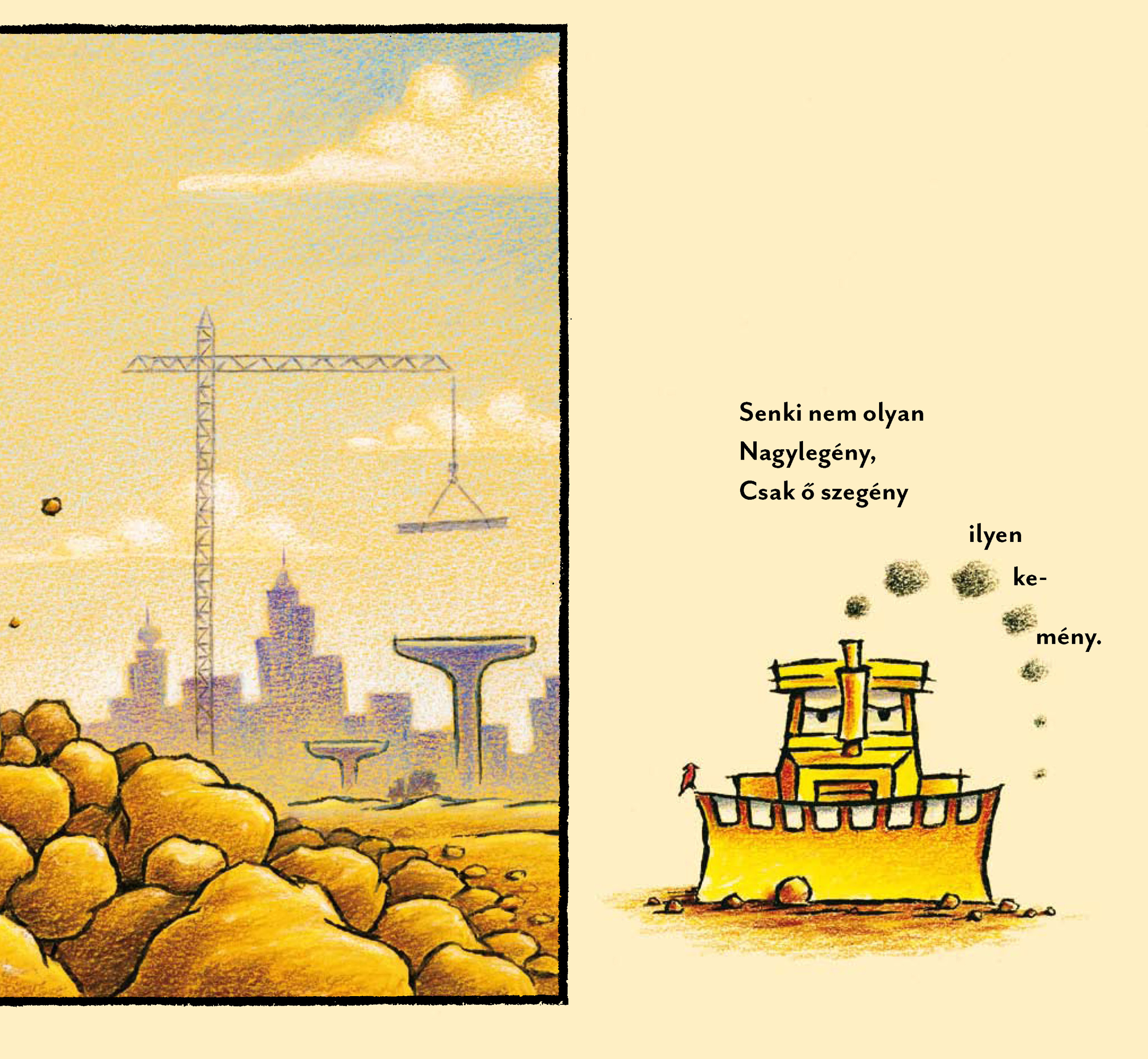 Ahogy lemegy a nap a nagy építkezés mögött, a szorgalmas munkagépek készen állnak, hogy jó éjszakát kívánjanak. Egyenként, egymás után a buldózer, a betonkeverő, a dömper és a kotró is befejezi a munkát, aludni mennek, hogy készen álljanak egy újabb nehéz és fárasztó napra. Ellenállhatatlan alkotás a sikerkönyves illusztrátor, Tom Lichtenheld rajzaival és kedves, álomba ringató szöveggel.