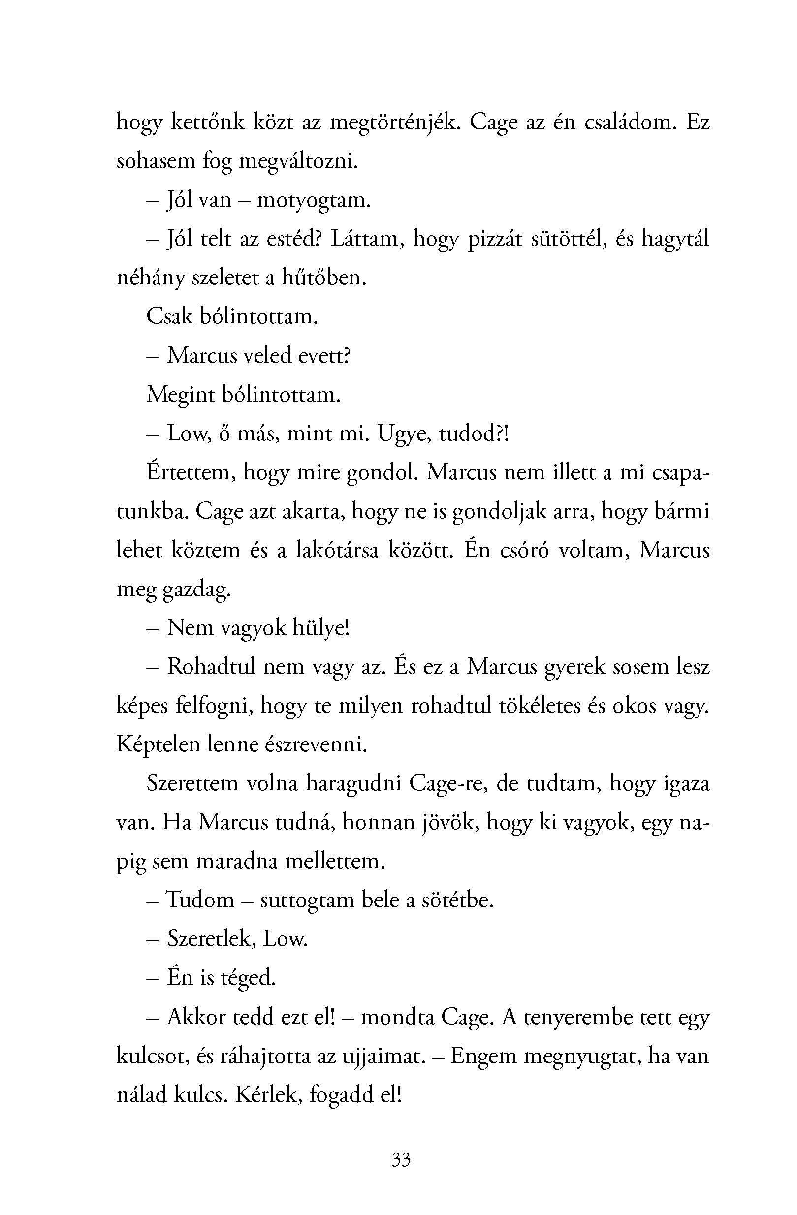 Marcus próbálja összeszedni magát, de úgy tűnik, ezt a nehéz időszakot csak egyetlen dolog tudja feledtetni: egy gyönyörű, vörös hajú lány. Willow – avagy Low – gyakori vendég Cage lakásában. Kettejük viszonya nem egyszerű: Cage kihasználva a főiskolai baseballsztárság előnyeit, minden csinos lányt meghódított, aki csak az útjába került, de úgy képzelte, hogy feleségül fogja venni Low-t, ha már kitombolta magát.